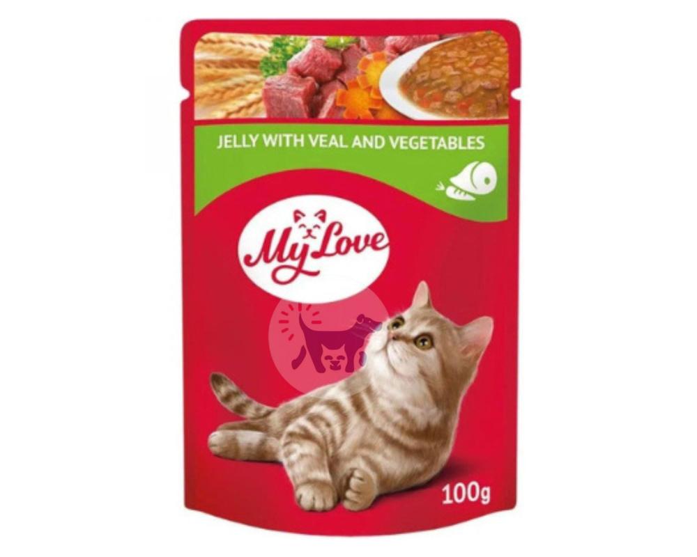 طعام رطب للقطط لحم العجل والخضروات في الجيلي .