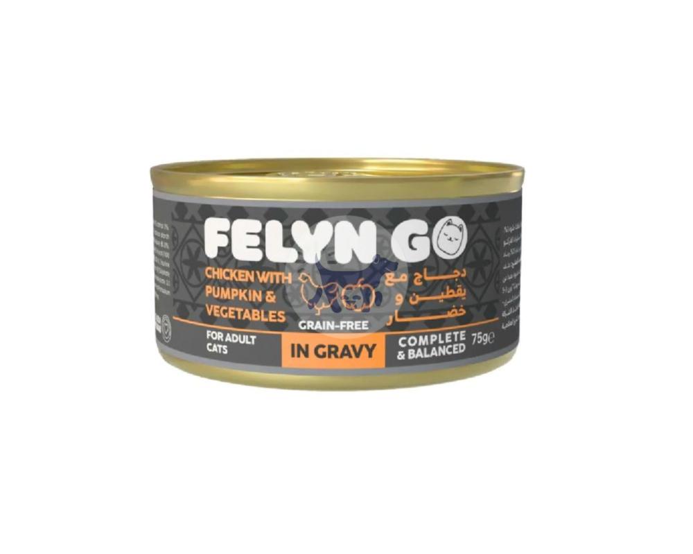 طعام رطب للقطط من فيلاين قو، بنكهة الدجاج مع اليقطين والخضار في المرق،